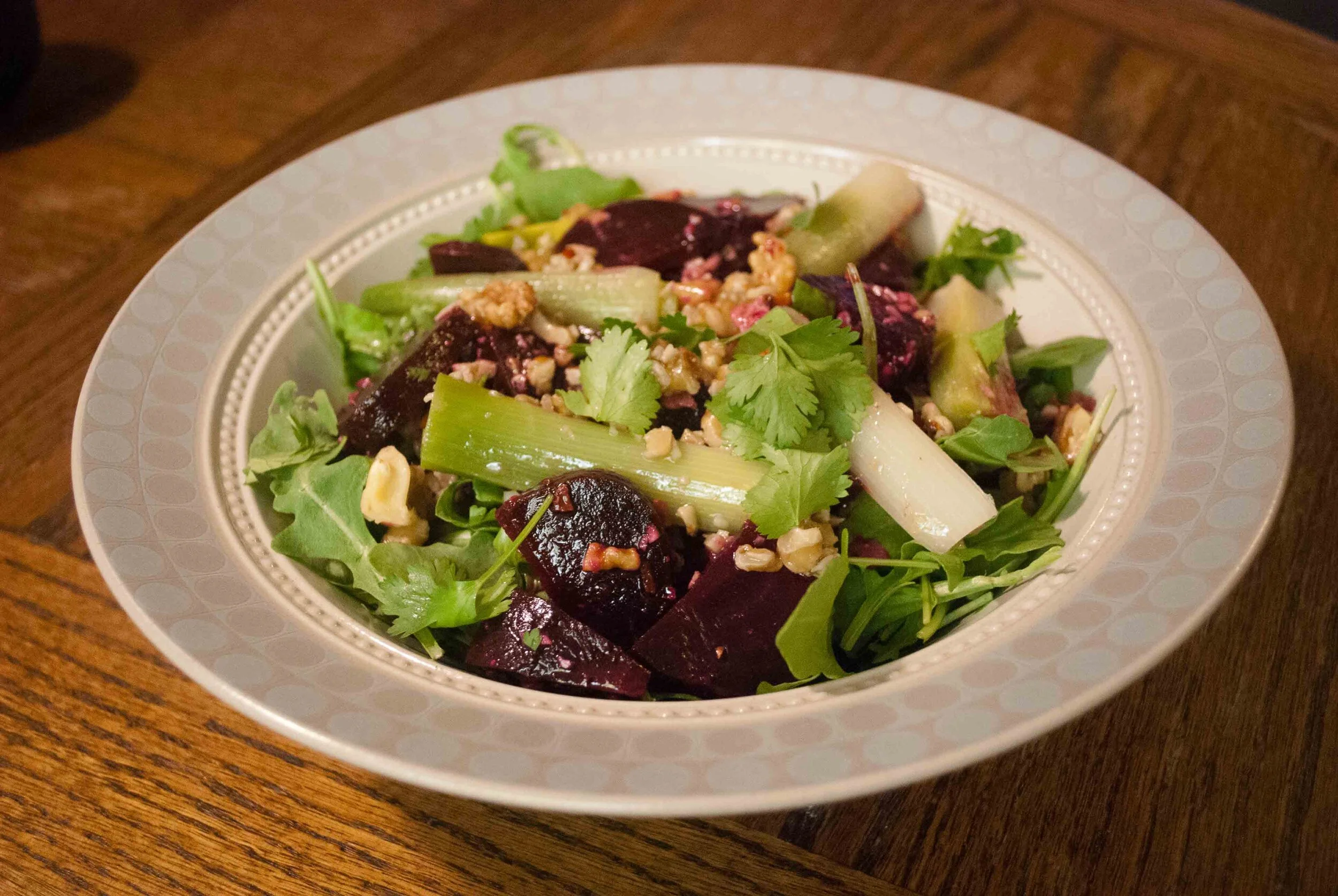 Leek and Beet Salad with Walnut Dressing